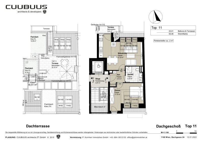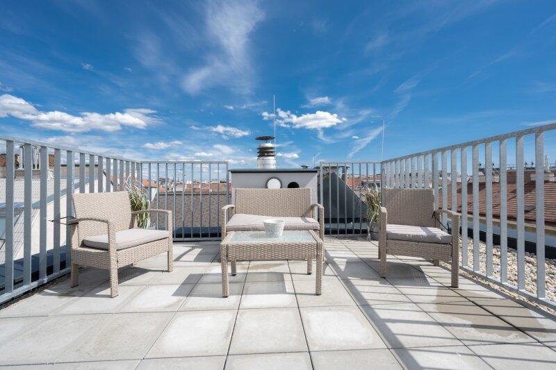 Top 11 besticht nicht nur durch einen gut strukturierten Grundriss, sondern auch durch die tolle Dachterrasse mit Blick über die Dächer Wiens in Richtung Rathaus 1160.