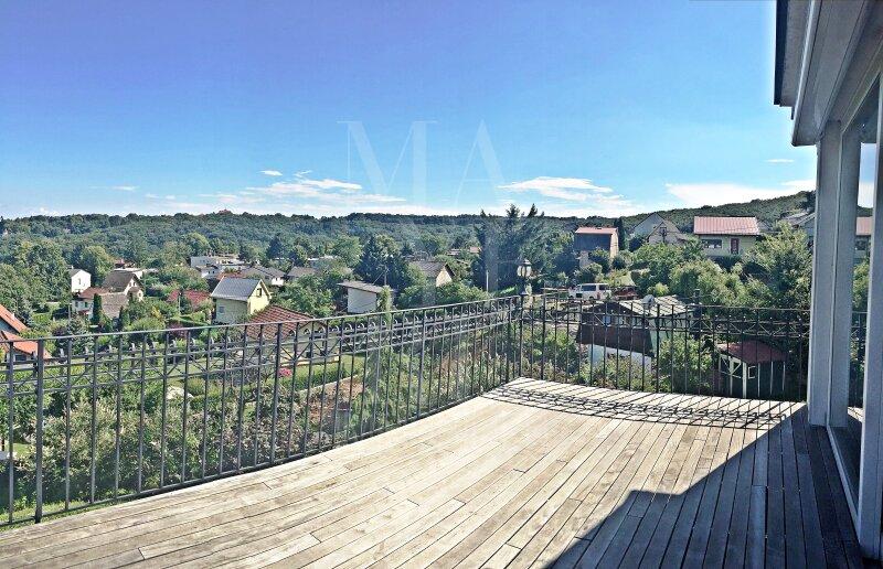 Dieses hochwertig ausgestattete Einfamilienhaus präsentiert sich in absoluter Grünruhelage und überzeugt durch moderne Architektur, großzügige Raumgestaltung sowie einen unverbaubaren Blick über Wien. Der sonnige, südseitig ausgerichtete Garten und das separate Gästehaus bieten ein Wohnambiente der Extraklasse.