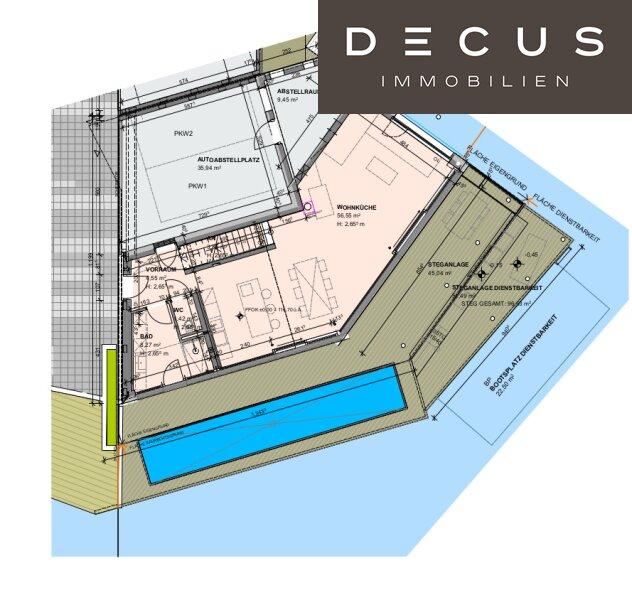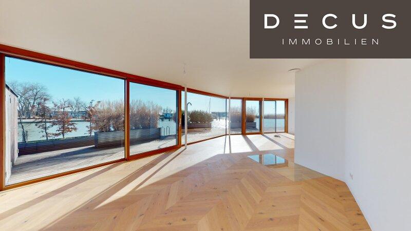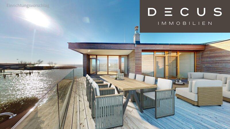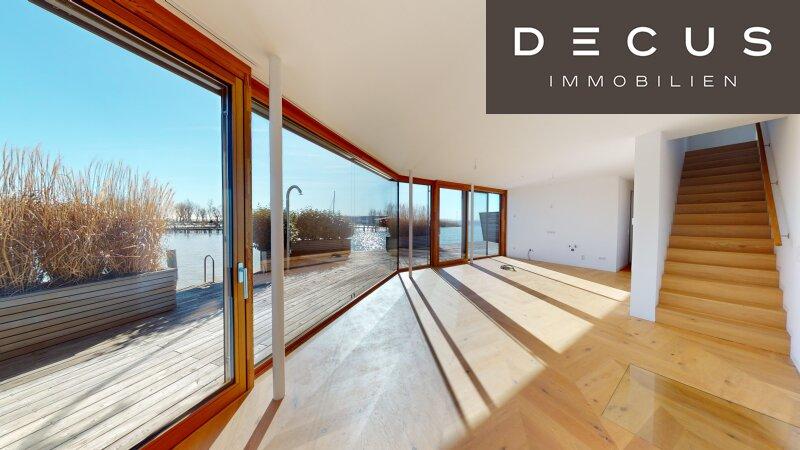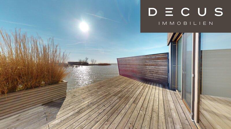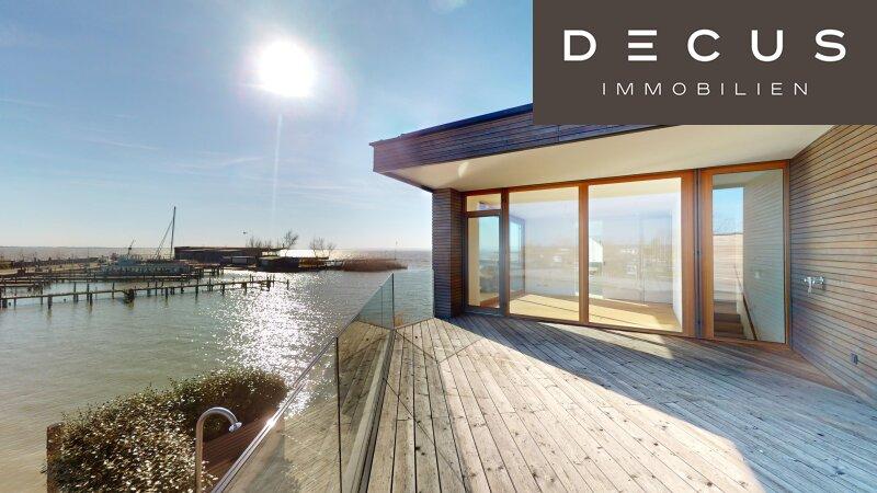 Das Seehaus besticht nicht nur durch seine Großzügigkeit, sondern vor allem durch seine exklusive Eck-Lage direkt im Hafen von Neusiedl an der Südspitze des Festlandpiers. Ein besonderes Highlight ist der auf Wunsch in die Terrasse integrierte Infinity-Pool, der nur wenige Schritte vom Wohnbereich entfernt wäre.