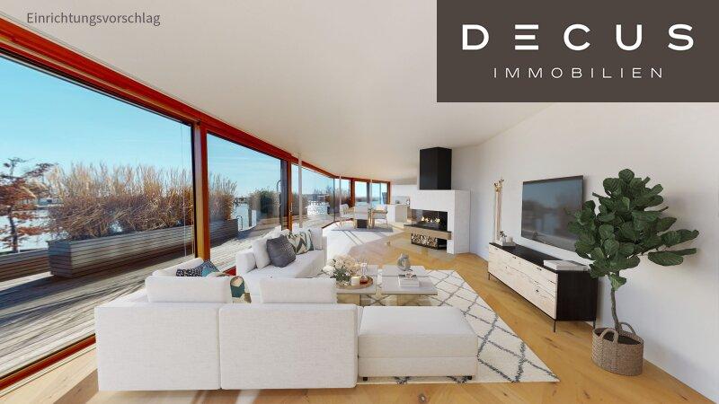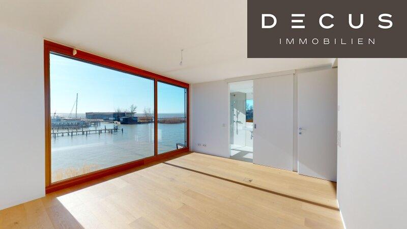 Dank der raumhohen Panoramaverglasung verschwimmt die Grenze zwischen Innen und Außen nahezu und ermöglicht es Ihnen, den See als integralen Bestandteil Ihres Wohnraums zu erleben. Hier können Sie den ganzen Tag die Sonne genießen und einen unvergleichlichen, ungehinderten Blick auf den See genießen.
