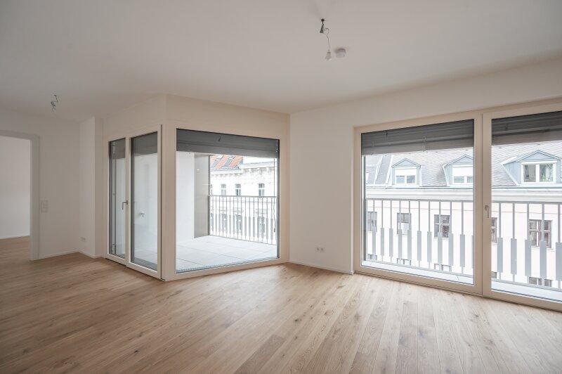 Zur befristeten Vermietung gelangt diese helle, toll aufgeteilte und sehr hochwertig ausgestattete ca. 55 m² große 2-Zimmer Neubauwohnung mit Terrasse in einem einzigartigen Neubau in toller Lage des 6. Wiener Gemeindebezirks!