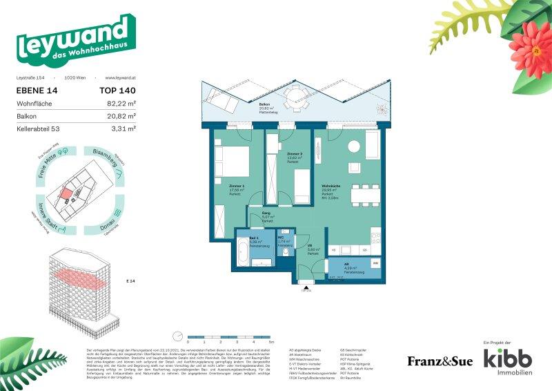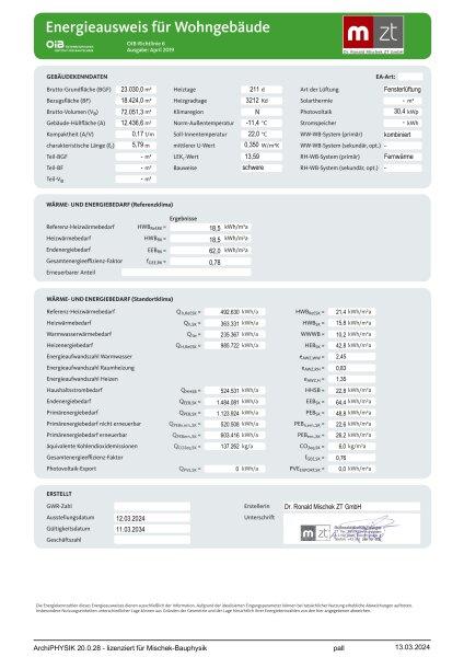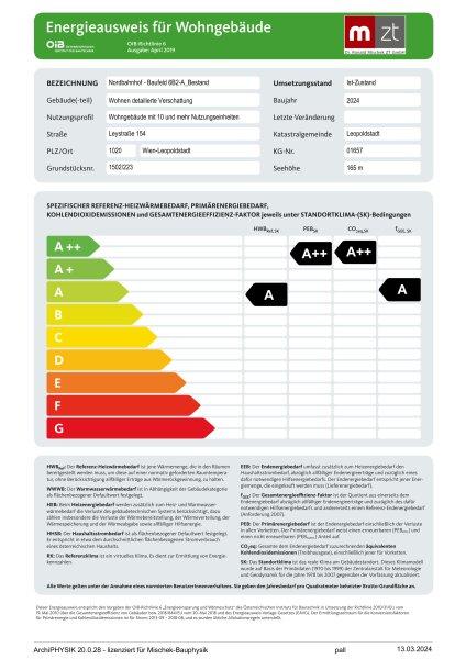 Das Projekt in 1020 Wien soll viel Komfort bei gleichzeitig niedrigem Energiebedarf schaffen. Das Gebäude erreicht einen Heizwärmebedarf von nur: 18,5 (B), fGEE: 0,78. Energieausweis gültig bis 11.03.2034