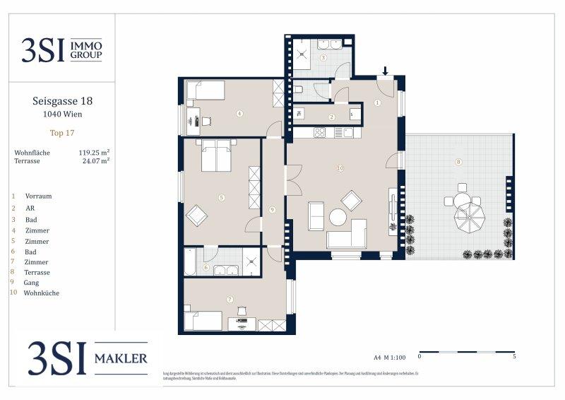 Denn in dieser 119m2 Dachterrassen-Wohnung sind Sie on top. 4-Zimmer Dachgeschoßwohnung vom Feinsten mit 36m2 zentraler Wohnküche und einer 26m2 Terrasse - klingt bezaubernd, ist es auch. In dieser luxuriösen Wohnung werden Sie und Ihre Liebsten sich ganz und gar wohlfühlen. 3 Schlafzimmer, 2 Badezimmer, der Vorraum und das WC sind für Sie hochwertig und elegant ausgestattet und tragen so zu Ihrem Wohnkomfort bei. Einfach herrlich!