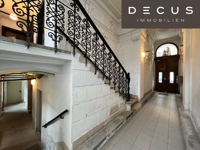Die Liegenschaft ist mit einem mehrgeschossigen Zinshaus bebaut und verfügt über Flächen im Souterrain, Hochparterre, 1.-3. Stock und dem nicht ausgebauten Rohdachboden.