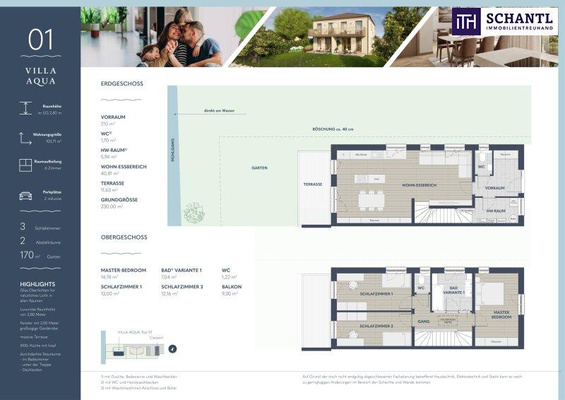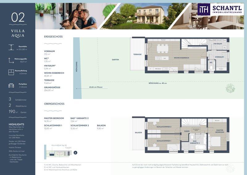 Erleben Sie außergewöhnlichen Wohnkomfort in den hochwertigen VILLA AQUA und VILLA TERRA, die mit ihrer massiven Bauweise, durchdachten Grundrissen und