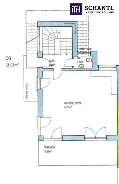 - im OG befindet sich der gigantisch große Wohn/Essbereich mit einer ca. 20m² großen Terrasse in SO Ausrichtung und ein WC mit Fenster, von dort gelangen Sie auf die extensiv begrünte Dachterrasse.