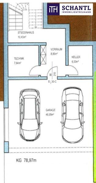 - im UG befindet sich ein Abstellraum mit 6,14m², der Stromkastenzähler, der Vorraum mit 8,85m², der Technikraum mit 7,36m² und das Treppenhaus mit 13,59m²