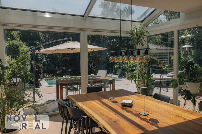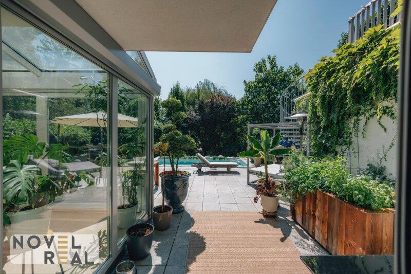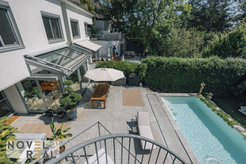 Zum Verkauf gelangt eine sonnige Traumwohnung mit perfekt durchdachtem Raumkonzept und exklusiver Ausstattung. Die südseitig ausgerichtete Maisonette befindet sich in einer kleinen Wohnanlage mit nur 7 Wohnungen und ist malerisch nahe dem Wienerwald gelegen. Auf 166 m2 Wohnfläche bieten sich Ihnen auf der ersten Ebene ein großzügiger Wohn-/Essbereich mit offenem Kamin sowie eine hochwertige Einbauküche mit Markengeräten. Weite Fensterfronten mit Blick auf die großzügige Terrasse mit modernem Pool sowie den einladenden Garten, lassen viel Licht herein und vermitteln ein beeindruckendes Raumgefühl. Auf der zweiten Ebene befinden sich 4 zentral begehbare Schlafzimmer und 2 exquisit ausgestattete Badezimmer. Perfekt eingeplante Einbauschränke in Maßarbeit bieten viel Stauraum. Die Wohnung befindet sich in ausgezeichnetem Zustand. Die Wohnung wurde komplett renoviert 2022/2023, ebenso wurde der Garten und der Pool modernisiert.