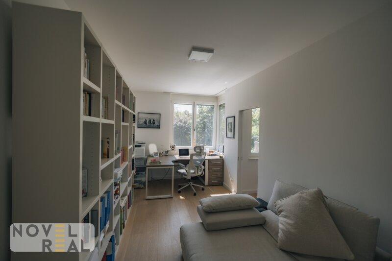 Das Büro mit Blick über den Wienerwald und in den Garten schafft eine angenehme motivierende Arbeitsatmosphäre.