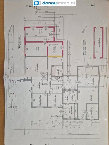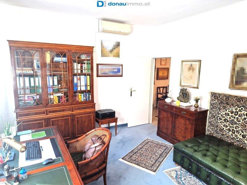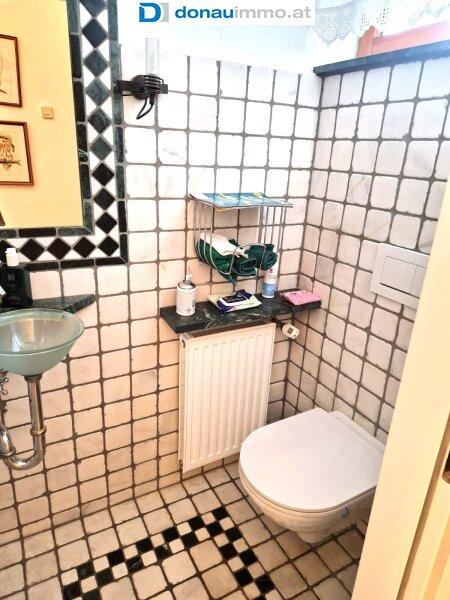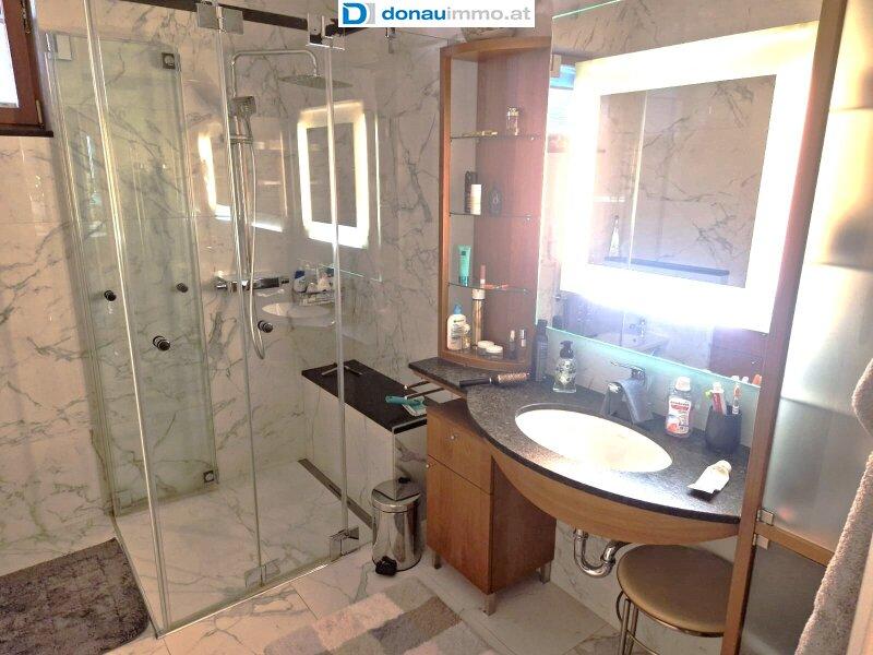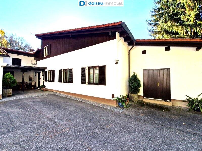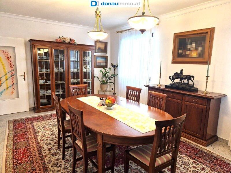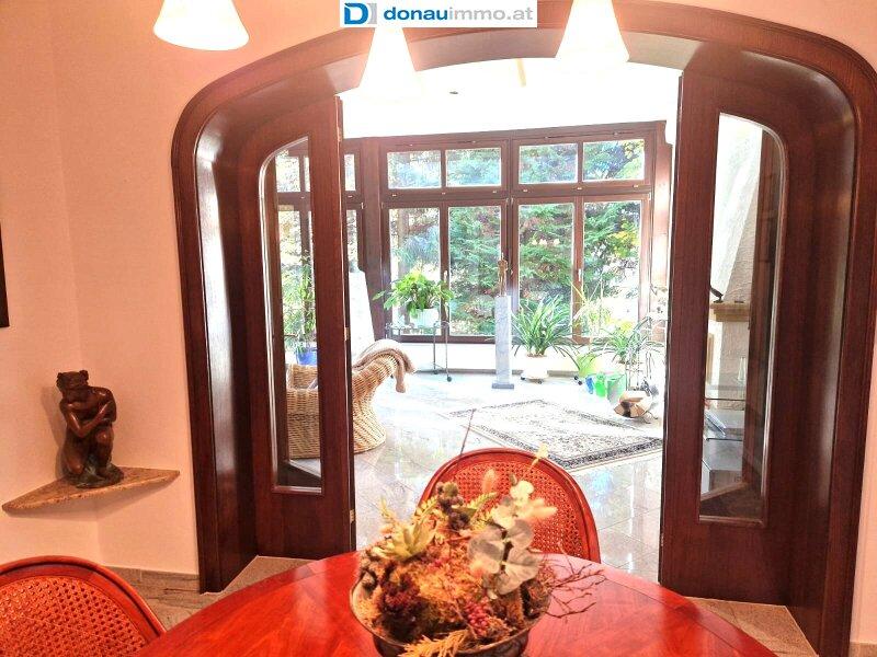 Das Wohnhaus bietet dem zukünftigen Eigentümer rund 250 m² Wohnnutzfläche, großzügige 7 Zimmer und 120 m² Terrasse. Über einen kurzen Gang, wo sich auch das Gäste-WC befindet, gelangen Sie in einen großen Vorraum, von hier aus erschließen sich alle Räumlichkeiten dieser wunderschönen Liegenschaft. Auf der linken Seite befinden sich das Schlafzimmer, ein Arbeitszimmer, das Badezimmer, sowie ein Gästezimmer mit einem kleinen Bad mit WC, dass auch von der Terrasse begehbar ist. Über den Vorraum erreicht man zur rechten Hand einen kleinen Abstellraum, ein Arbeitszimmer, das ausgesprochen stilvolle Esszimmer, sowie die sehr großzügige Küche und einen weiteren Raum, der derzeit als Speisekammer verwendet wird und auch vom Hof begehbar ist.