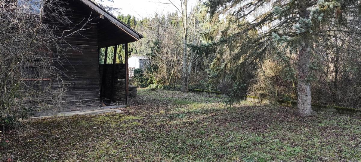 Auf dem Grundstück befindet sich derzeit ein älteres Holzgartenhaus sowie Altbaumbestand, der für ein angenehmes, natürliches Wohnumfeld sorgt.