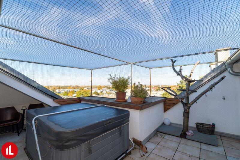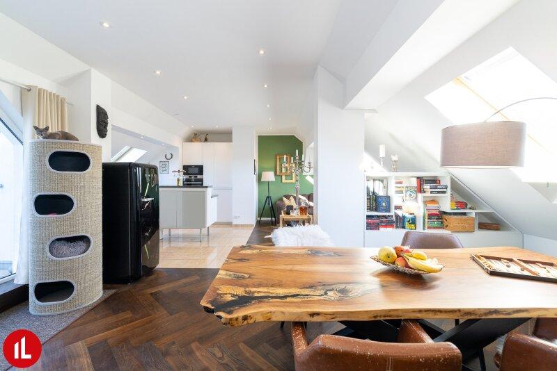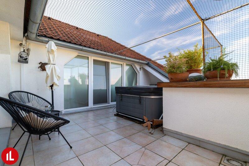 Die beeindruckende Wohnfläche von 148 m² verteilt sich auf vier separat begehbare, große Zimmer und bietet damit Raum für stilvolles Wohnen, Arbeiten und Entspannen. Das zentrale Vorzimmer führt in die elegante Hochglanzküche, die direkt in den großzügigen Wohnbereich übergeht. Von hier gelangen Sie auf die spektakuläre Dachterrasse, die mit ganztägiger Sonne, einem Whirlpool und herrlichem Ausblick begeistert ein Ort, an dem man den Alltag hinter sich lässt.