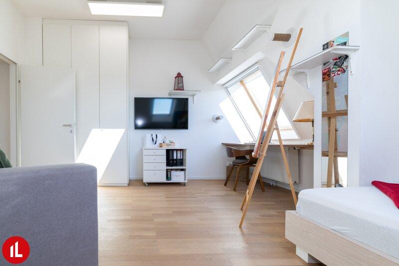 Das Penthouse überzeugt durch eine beachtliche Raumhöhe von 2,95 m, keine störenden Dachschrägen und äußerst viel Privatsphäre, da sich keine Wohnung darüber befindet. Ein eigener Dachboden sorgt zudem für zusätzlichen Stauraum. Die Wohnung liegt im 4. Liftstock eines gepflegten Hauses.