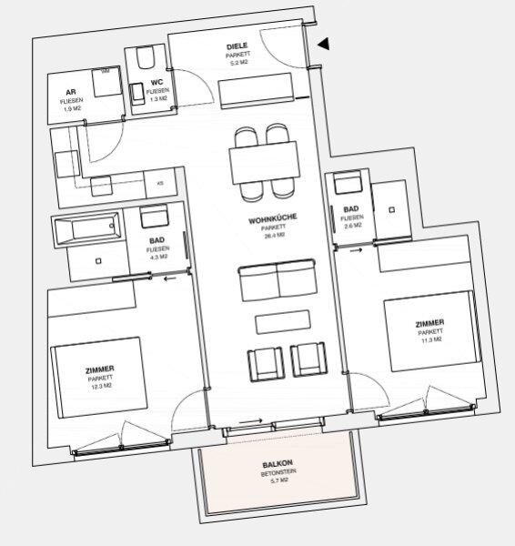 Fast jede Wohnung ist nicht nur mit einer Freifläche ausgestattet, sondern weißt auch hochwertige Materialien als auch Ausstattung aus: