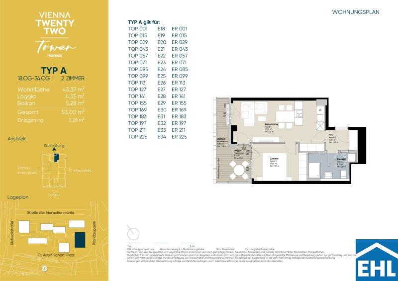 In einzigartiger Lage, direkt bei der U1-Station Kagran und vis-à-vis vom Donau Zentrum, entsteht ein exklusiver, ca. 155m hoher Wohnturm mit 45 Etagen. Die insgesamt 347 Mietwohnungen bieten einen vielfältigen Wohnungsmix: von smart geschnittenen 1,5-Zimmer-Apartments ab ca. 38 m² über komfortable 2-Zimmer-Wohnungen bis hin zu großzügigen 3- und 4-Zimmerwohnungen mit bis zu ca. 80 m².