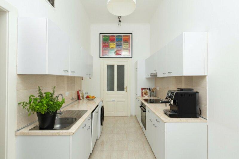 - Einbauküche inkl. Cerankochfeld, Dunstabzug, Kühl-/Gefrierkombination, Backrohr & Geschirrspüler und Platz für einen kleinen Essbereich