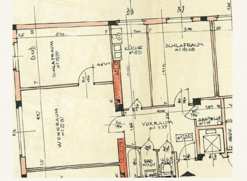 großer Vorraum, Wohnzimmer ca. 23 m², separate voll ausgestattete Küche 8 m², 2 Schlafzimmer (15 & 16 m²), separates Badezimmer mit Wanne, separate Toilette, Abstellraum
