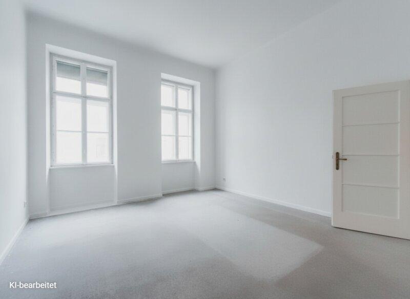 Zwei große Zimmer, eine Küche und der Abstellraum bieten vielfältige Möglichkeiten - durch Verlegung der Küche in den Wohnbereich könnten zwei Schlafzimmer geschaffen werden.