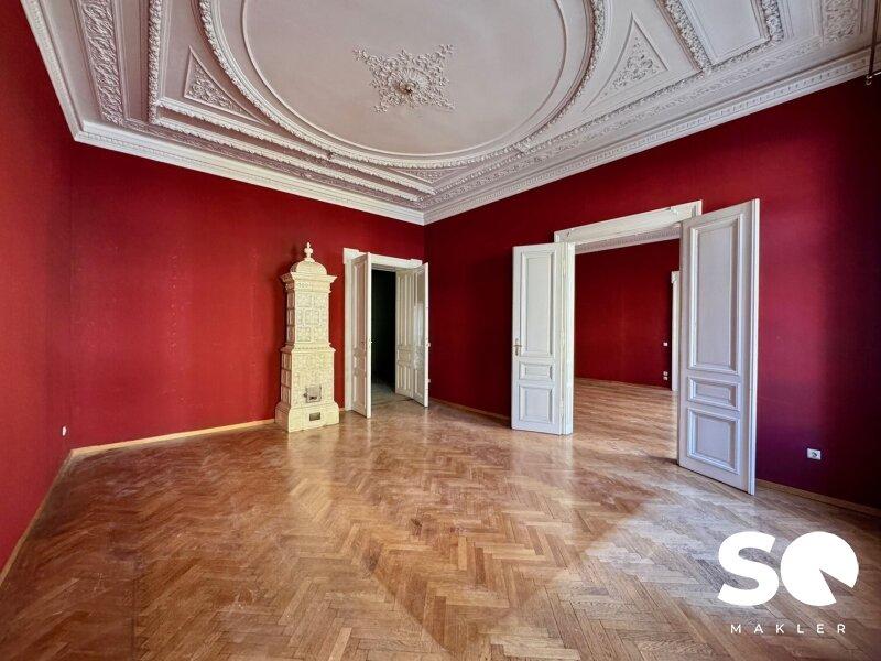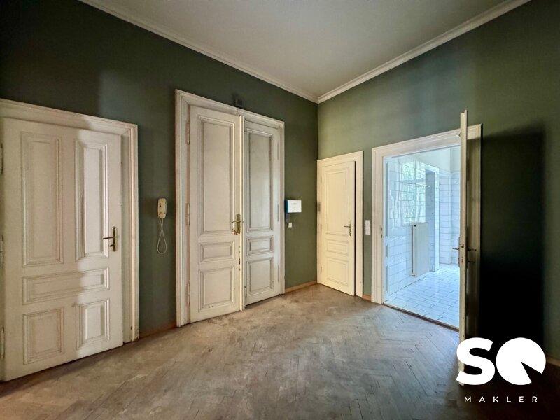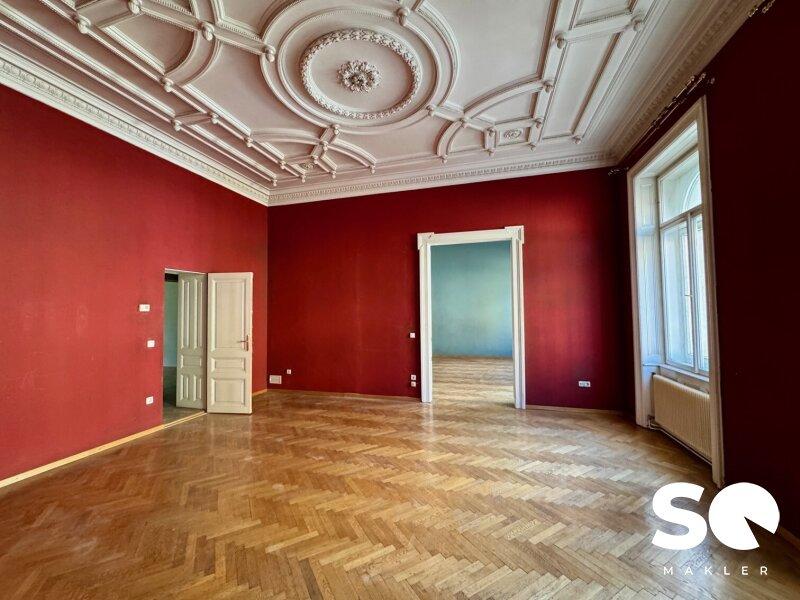 Hohe Räumlichkeiten mit wunderschöner Stuckatur an den Decken