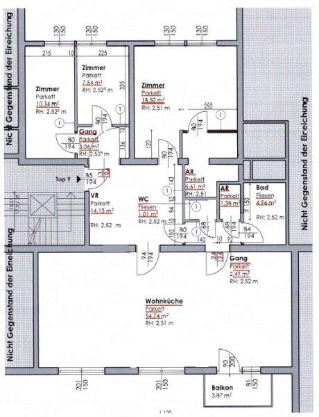 Sie betreten die Wohnung und gelangen in den großzügigen Vorraum, der genügend Platz für eine Garderobe bietet. Rechts finden Sie das Herzstück dieser eleganten Wohnung vor, die ca. 54 m² große Wohnküche mit Zugang zum ca. 4 m² großen Balkon, der Platz für eine gemütliche Sitzgelegenheit zum Entspannen bietet. Die Designerküche ist mit hochwertigen Geräten der Marke Siemens ausgestattet und bietet viel Stauraum. Gegenüber finden Sie die drei weiteren Zimmer vor. Ganz rechts befindet sich das mit ca. 18 m² größte der drei Zimmer, in dem Sie ausreichend Platz für ein großes Bett und einen Kleiderschrank finden. Das Badezimmer en Suite ist mit einer wunderbaren Glasdusche sowie einer Toilette ausgestattet. Hier treffen Sie außerdem auf edle Keramik sowie Designerarmaturen. Das zweite Zimmer bietet mit ca. 10 m² Fläche Platz für ein weiteres Schlafzimmer. Das dritte, etwas kleinere Zimmer könnte beispielsweise als Arbeitszimmer genutzt werden. Vom Vorraum aus erreichen Sie außerdem das zweite Bad, den Abstellraum und das Gäste-WC. Das luxuriöse Bad ist mit einer Dusche sowie einer Badewanne ausgestattet. Die Wohnung wird mittels Elektroheizung beheizt.