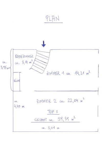 -  Zimmer 1 hat eine Küche und ca. 14,21 m²,