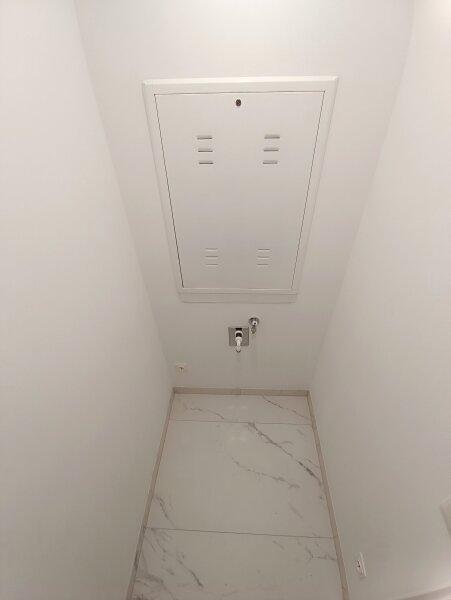 Weizer Parkett Eiche in den Wohnräumen und großflächige Bodenfliesen in Marmoroptik im Badezimmer und Abstellraum wurden sorgfältig ausgewählt und vermitteln einen edlen Eindruck. Zusätzlich verfügt der Abstellraum über einen praktischen Waschmaschinen-Anschluss.