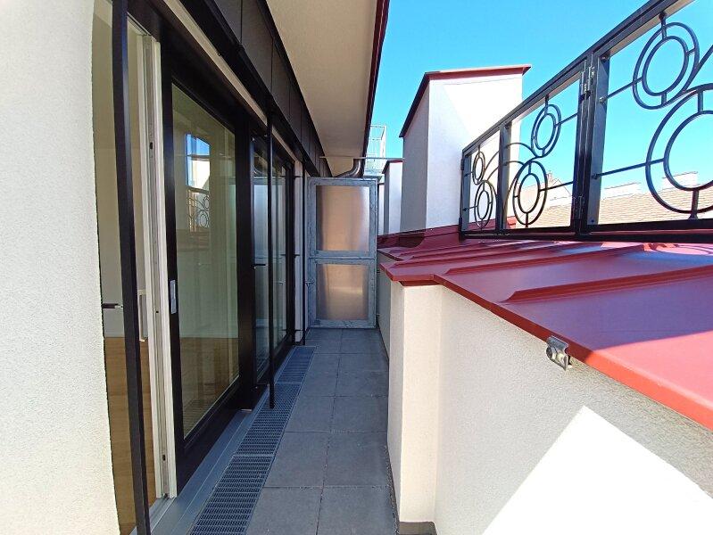 In diesem 2024 neu errichteten Dachgeschossausbau erwartet Sie eine Wohnung mit rund 54 m² Wohnfläche und einer umlaufenden Terrasse mit rund 15,43 m². Die Wohnung überzeugt mit hochwertiger Ausstattung und smartem Layout. Insgesamt 2 Zimmer mit einer Fläche von jeweils rund 30,93 m² (Wohnzimmer) und 10,57 m² (Schlafzimmer) stehen zur Verfügung.