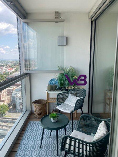 Lebensqualität, die alles andere überragt, 2 Zimmer Wohnung mit Balkon im Erstbezug mit wunderschönem Weit-Blick! Die westseitige Wohnung befindet sich im 22. Obergeschoß des neu errichteten Hauses.