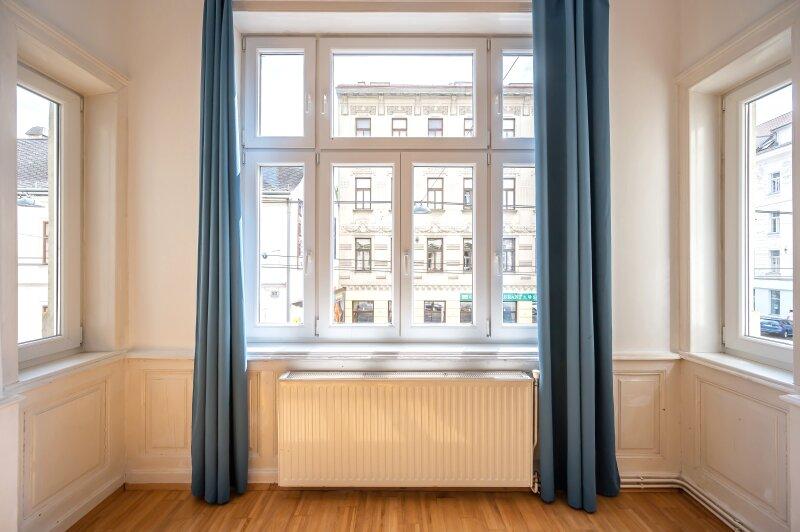 Das Objekt liegt im 1. Stock (ohne Aufzug) eines repräsentativen Stilaltbaus mit gegliederter Fassade. Die Liegenschaft strahlt historischen Charme aus und befindet sich in gutem Erhaltungszustand.