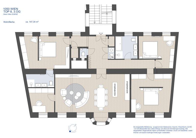 Die Liegenschaft befindet sich im 1. Stock eines im Jahre 1910 erbauten Altbaus und erstreckt sich über eine Wohnfläche von ca. 147 m². Die Wohnung teilt sich in mehrere Vorräume, eine Küche, 4 Zimmer, 1 Kabinett, 1 Badezimmer und zwei separate Toiletten auf. Das Objekt überzeugt mit Fischgrätparkett, wunderschönen Flügeltüren und traumhaftem Stuck. Ein moderner Lift im Haus ist vorhanden.