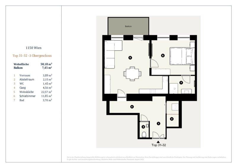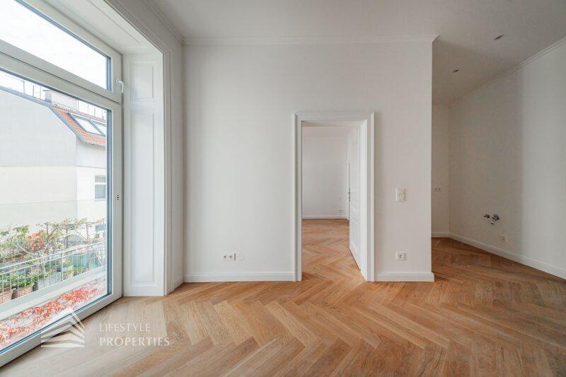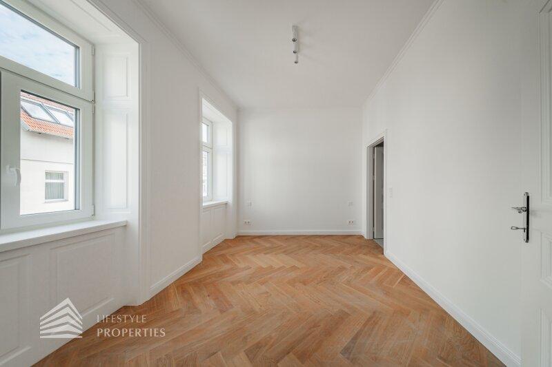 Sie ist ein Erstbezug, verfügt über ca. 50 m² und befindet sich im 3. Stock eines im Jahr 1900 erbauten Altbaus. Die Wohnung gliedert sich in einen Vorraum, eine Wohnküche, ein Schlafzimmer, ein Bad und ein separates WC. Es kann ein Balkon angebracht werden. Die Wohnung wurde vor kurzem saniert und verfügt über einen Fischgrät-Eichenparkett und ist mit stilvollen Kassettentüren ausgestattet. Eleganter Deckenstuck und feine Vertäfelungen unterstreichen den einzigartigen Alt-Wien-Charakter. Das Bad und das WC bestechen durch hochwertige Marken-Armaturen & Keramiken.