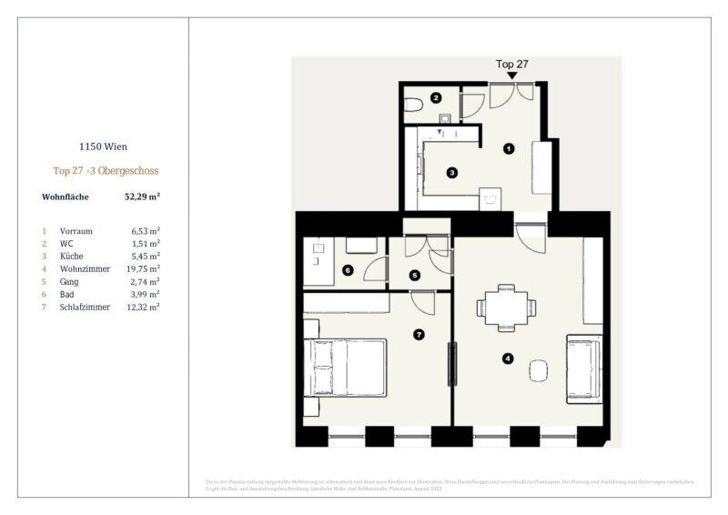 Die Wohnung ist ein Erstbezug, verfügt über ca. 53 m² und befindet sich im 3. Stock eines schönen Altbaus und gliedert sich in einen Vorraum, ein Zimmer, eine Küche, ein Wohnzimmer, ein Badezimmer und ein separates WC. Die Wohnräume sind mit schönem Parkettboden ausgestattet, Bad und WC sind verfliest.