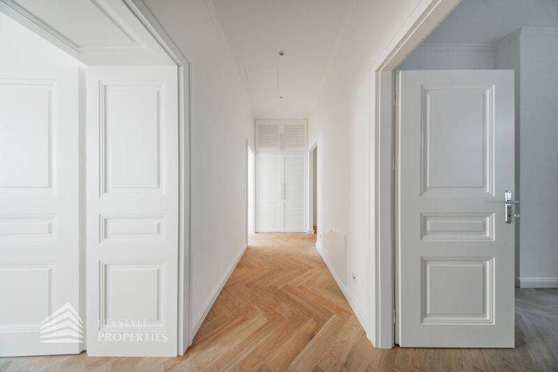 Die Wohnung ist ein Erstbezug, verfügt über ca. 73 m², befindet sich im 2. Stock eines schönen Altbaus und gliedert sich in einen Vorraum, zwei Zimmer, eine Wohnküche, ein Badezimmer und ein separates WC. Die Wohnräume sind mit schönem Parkettboden ausgestattet, Bad und WC sind verfliest. Beheizt wird mit Fußbodenheizung.