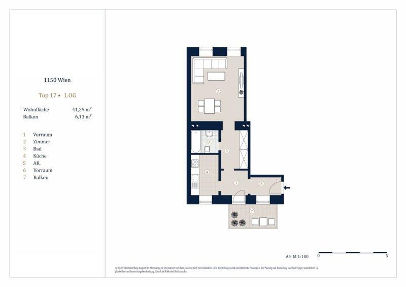 Sie verfügt über ca. 41 m² und befindet sich im 1. Stock eines schönen Altbaus. Die Wohnung gliedert sich in einen Vorraum, einen Wohnraum, ein Schlafzimmer, eine Küche, ein Badezimmer mit WC.