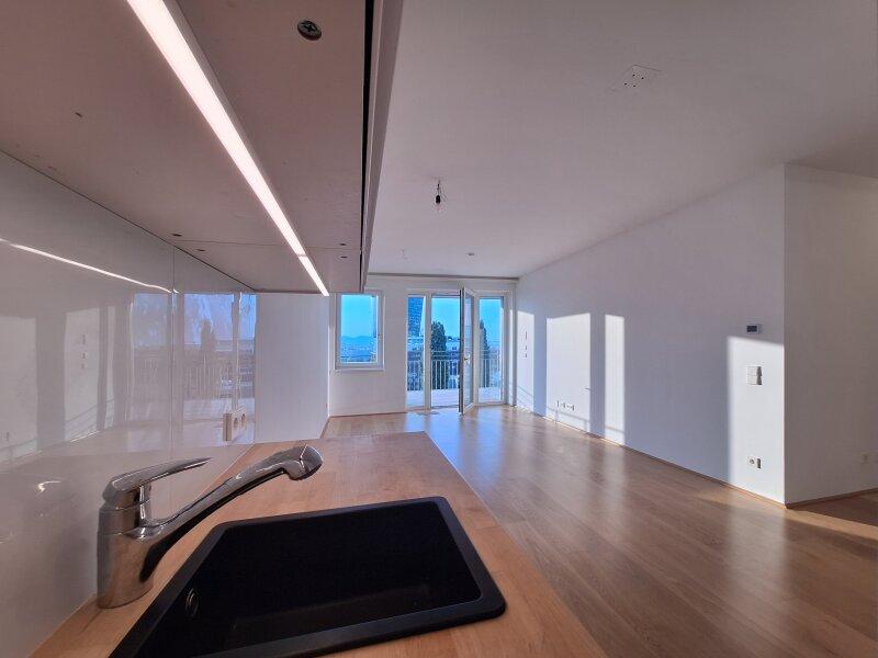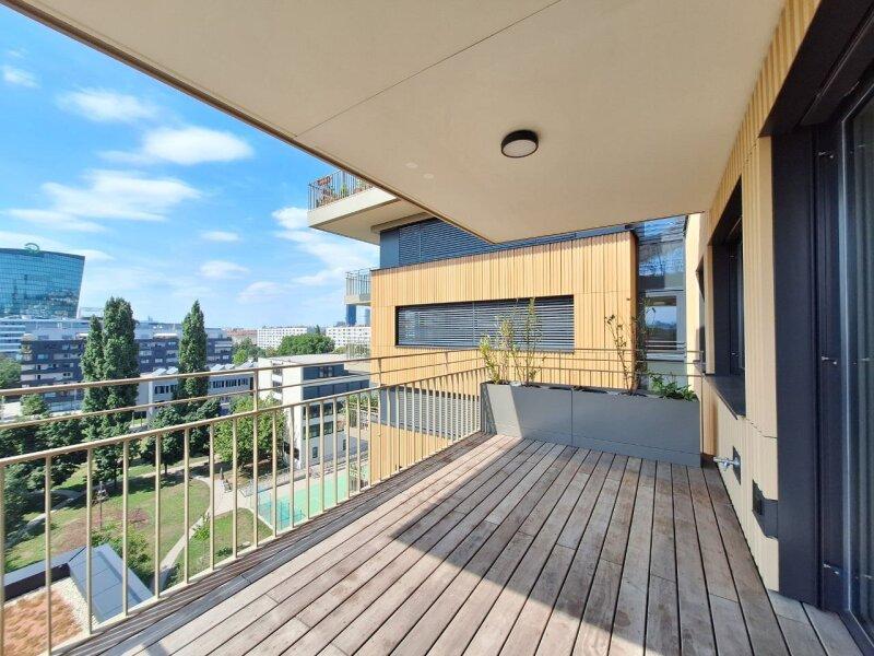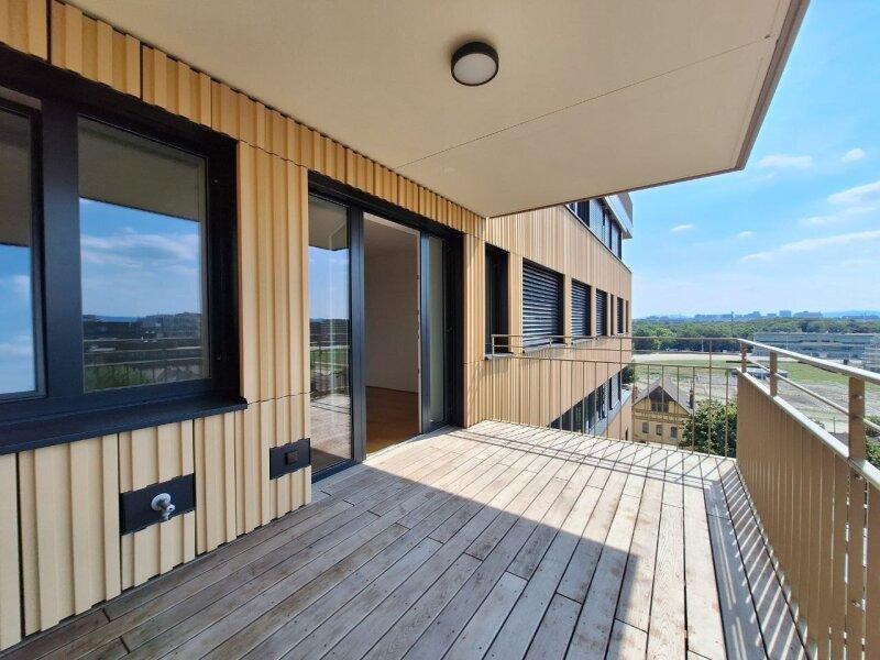 Die Wohnung befindet sich in der 8. Etage eines modernen Gebäudes und beeindruckt durch einen atemberaubenden Fernblick über den unverbaubaren Prater bis hin zum Kahlenberg und Leopoldsberg. Diese Aussicht genißt man von der eigenen Terrasse, deren Größe und Form perfekt für entspannte Stunden im Freien geeignet ist.