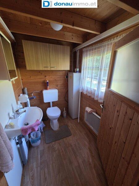 Das Gartenhaus mit Wasser- und Kanalanschluss hat