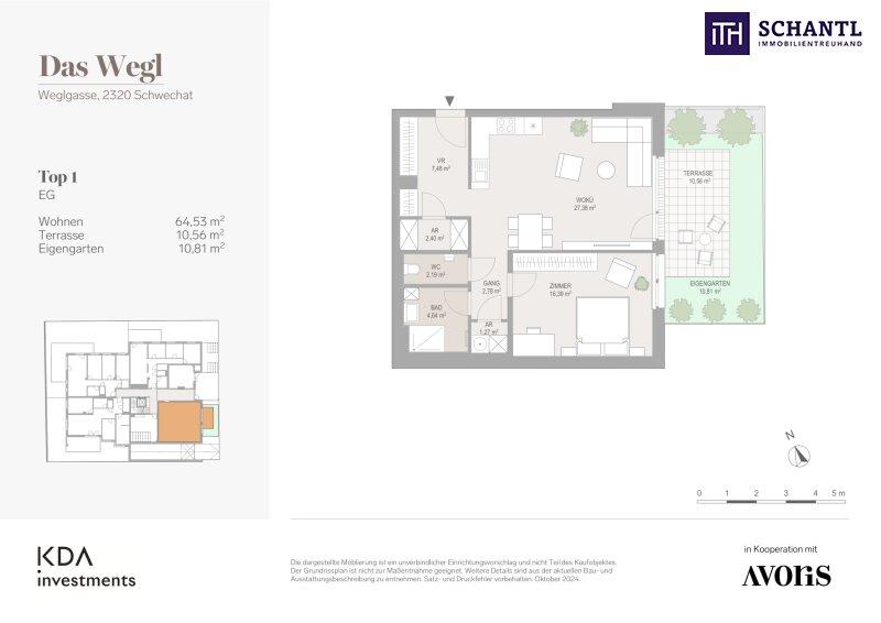 Wohnfläche: ca. 64,53 m² + Terrasse: ca. 10,56 m² + Garten: ca. 10,81 m² + Kellerabteil: ca. 2,55 m²