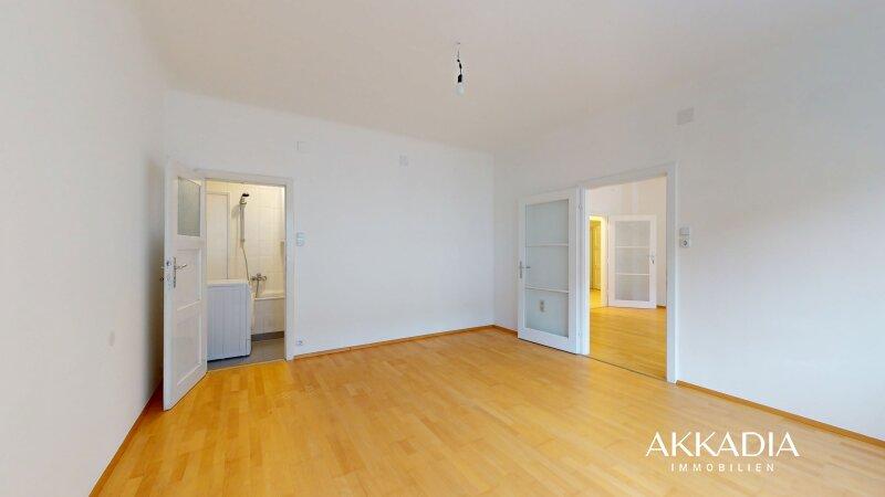 Beim Betreten der Wohnung befindet man sich im Vorzimmer, von welchem aus man die Möglichkeit hat, das WC, die Küche und das Wohnzimmer zentral zu begehen. Auf der linken Seite des Vorraumes befindet sich die Küche von der man zur nordwestlich ausgerichteten Loggia gelangt. Am Ende des Ganges befindet sich das getrennte WC und Badezimmer, welches sowohl vom Schlafzimmer als auch vom Badezimmer begehbar ist . Der gute Grundriss, das offene und helle Ambiente sowie die ergänzende Außenfläche runden das harmonische Konzept ab und machen die Wohnung perfekt für Singles und Pärchen mit Platzbedarf.