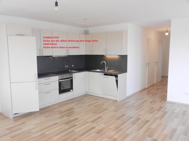 Wohnzimmer mit offenem Küchenbereich (37,16 m2) und neuer Komplettküche mit Ausgang auf die Loggia.