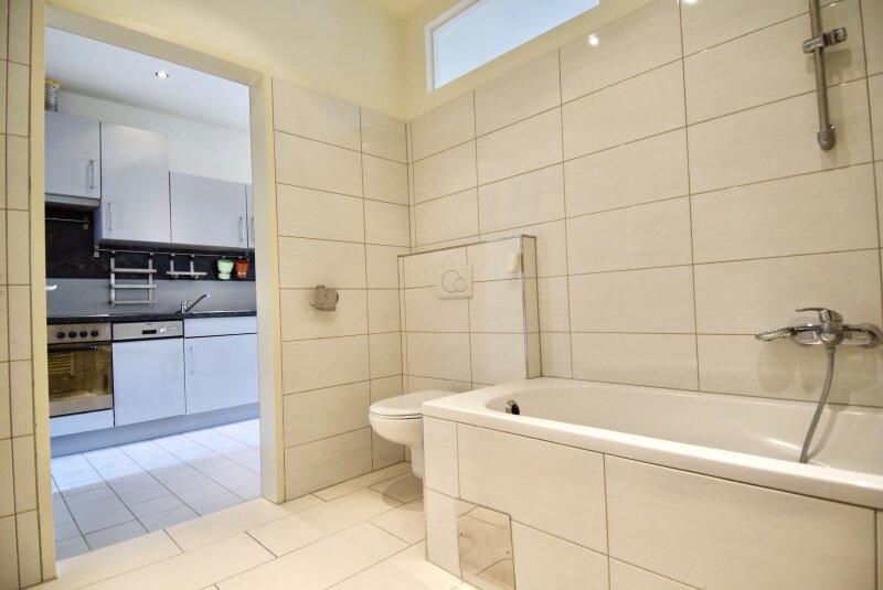 Das sonnige Wohnzimmer bietet einen schönen Ausblick, darüber hinaus verfügt diese Wohnung über ein hofseitig gelegenes Schlafzimmer, einen Vorraum mit Küchenzeile und ein Badezimmer mit Wanne und WC.