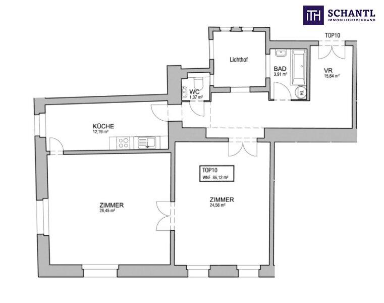 Willkommen in Ihrer neuen 2-Zimmer-Eckwohnung, die mit großzügigen, lichtdurchfluteten Räumen und hohen Decken überzeugt. Der separate Essbereich in der Küche lädt zu gemütlichen Mahlzeiten ein, während das Badezimmer mit Fenster zum Lichthof für Helligkeit und Frische sorgt.