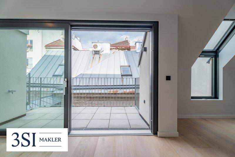 Die Dachgeschosswohnungen drei Einheiten im 1. Dachgeschoß und das Penthouse im 2. Dachgeschoß bilden das architektonische Highlight des Projekts. Großzügige Fensterfronten lassen die lichtdurchfluteten Räume erstrahlen und eröffnen eindrucksvolle Ausblicke über die Stadt.