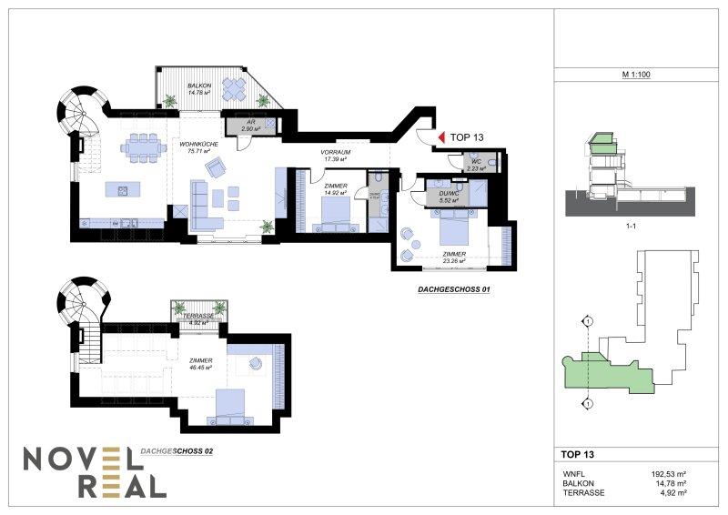 Es handelt sich um ein Bauträgerprojekt mit 17 Wohnungen ZWISCHEN 70m² UND 225 m², weitere verfügbare Objekte finden Sie auf www.novel-real.at