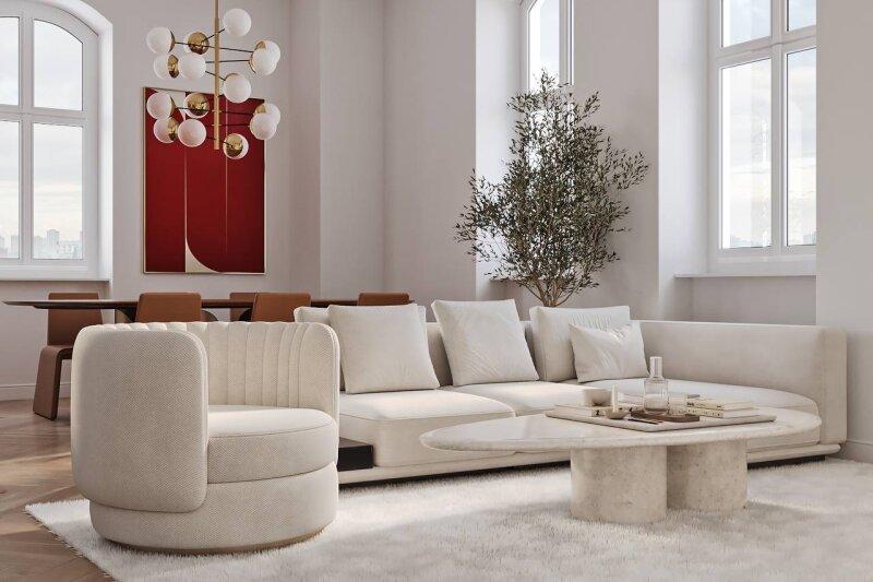 The living room offers a particularly green view of the Danube Canal and the city beyond. The windows are of particularly high quality, allowing you to enjoy your evening undisturbed despite the urban location.