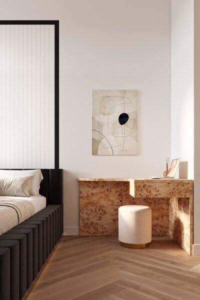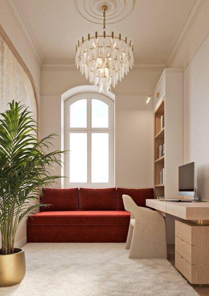 The owner has created an interior design concept, which can be implemented if desired. He is selling the apartment due to career changes.