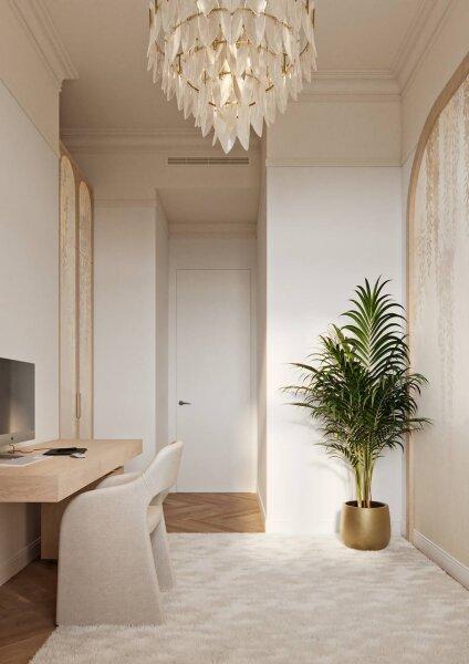 Die Wohnung beeindruckt mit 3,50 m Raumhöhe, französischem Echtholzparkett, hohen Sockelleisten und Stukatur. Kühlung, kontrollierte Wohnraumlüftung und Smart Home System bieten modersten Komfort ohne auf den besonderen Charakter der Gründerzeitarchitektur zu verzichten.