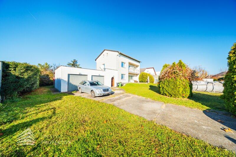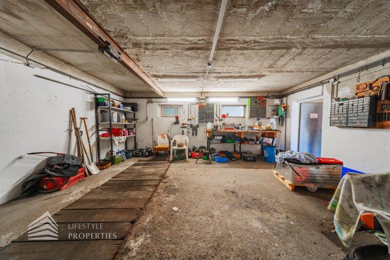 Der Außenbereich besteht aus einem großzügigen Garten mit rund 840 m² sowie einer Garage von etwa 60 m² und zusätzlichen Stellplätzen. Die Heizung erfolgt über eine Zentralheizung, betrieben mit Öl und Elektro. Aufgrund des guten Zustands des Bestandsgebäudes ist sowohl eine sofortige Nutzung als auch ein schrittweises Entwicklungsmodell möglich.