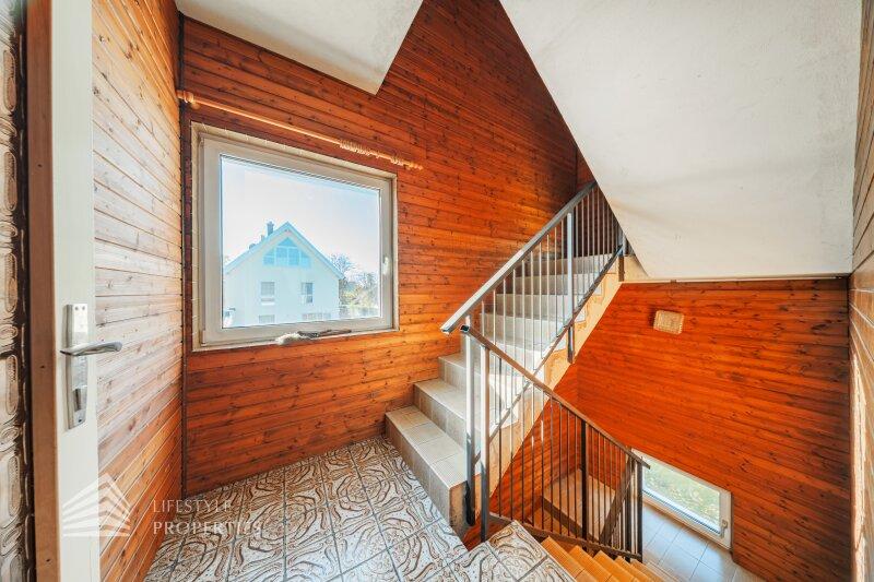 Das Haus erstreckt sich über zwei Wohnebenen mit einem Erdgeschoss von ca. 75 m² und einem Dachgeschoss von ca. 72 m². Ergänzt wird das Raumangebot durch ein überwiegend unterkellertes Untergeschoss mit etwa 51 m². Die Raumaufteilung ist flexibel und ermöglicht sowohl die Nutzung als Einfamilienhaus als auch als Mehrgenerationen-Lösung. Insgesamt stehen sechs Zimmer sowie ein Gästezimmer zur Verfügung, wodurch große Familien, Home-Office-Bedürfnisse problemlos Platz finden. Eine Sauna rundet das Angebot optimal ab.