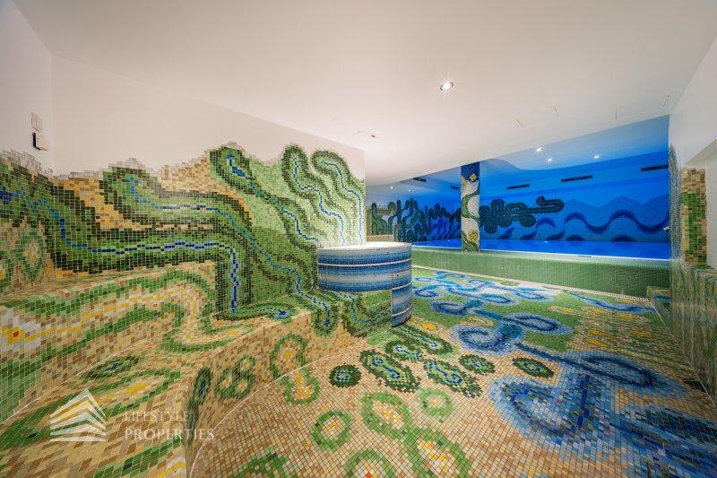 Das Wohnhaus verfügt über einen Innen- sowie Außenpool. Ergänzt wird das Angebot durch eine Sauna mit integrierter Dusche und WC. Alle Einrichtungen stehen das ganze Jahr über zur Verfügung. Ein weiteres Highlight ist der Weinkeller, der nicht nur über individuelle Weinabteile für jede Wohnung verfügt, sondern auch ideal für Feierlichkeiten genutzt werden kann. Zudem gehört ein Kamin zur Ausstattung jeder Wohnung.