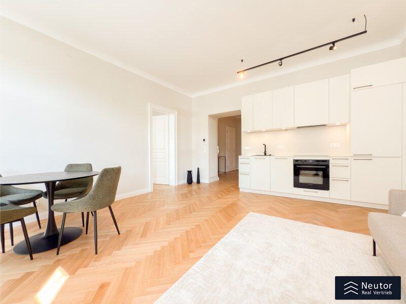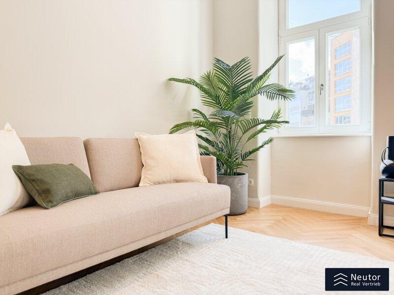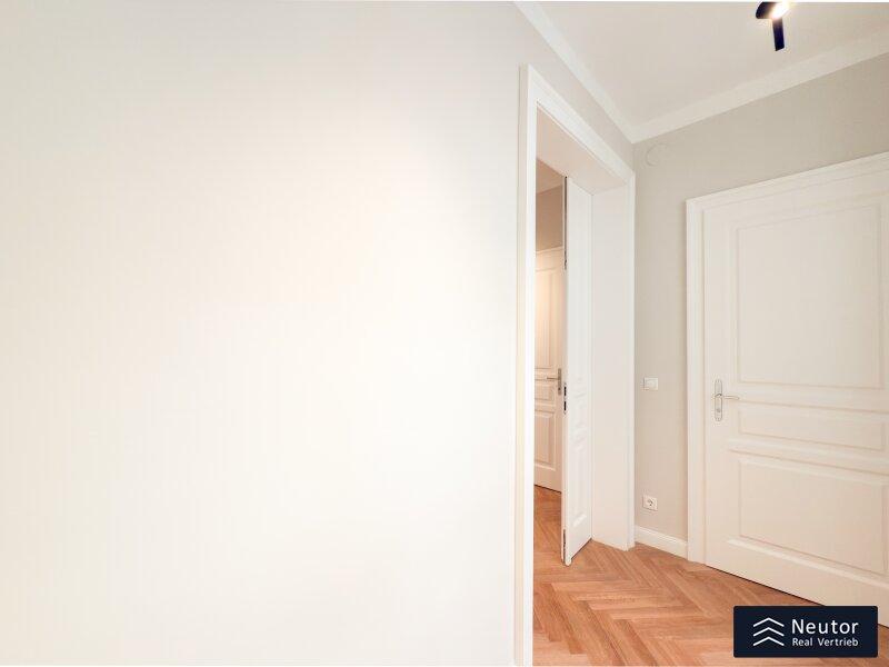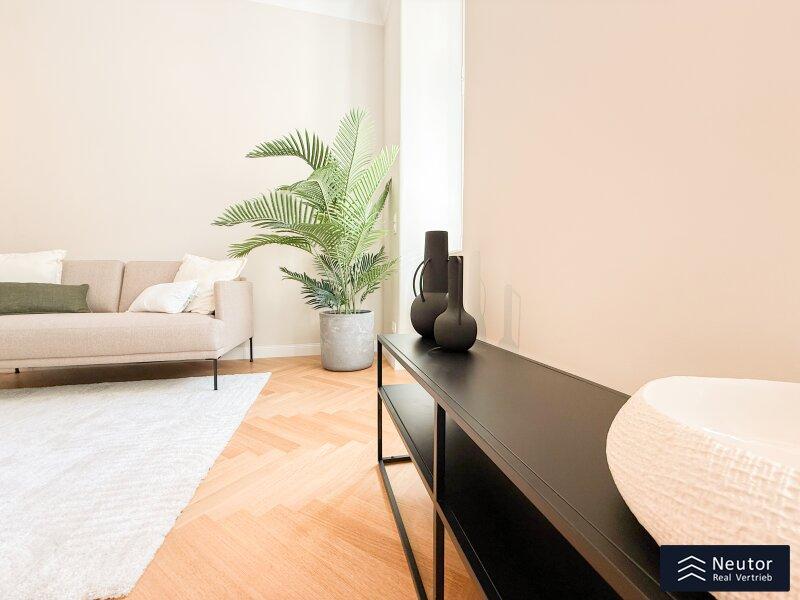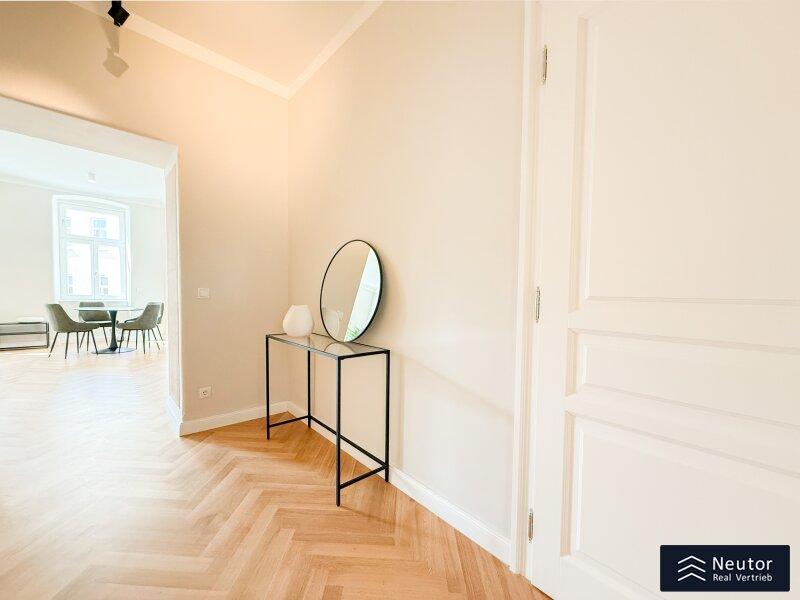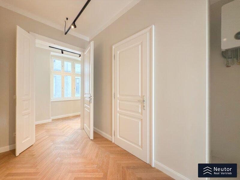 Schon beim Betreten dieser Wohnung spürt man den Charme der frisch renovierten Altbau-Substanz. Die wunderschönen, neuen Flügeltüren im Altwienstil verleihen den Räumen einen Hauch von Eleganz, während die geschmackvolle Modernisierung für höchsten Wohnkomfort sorgt.